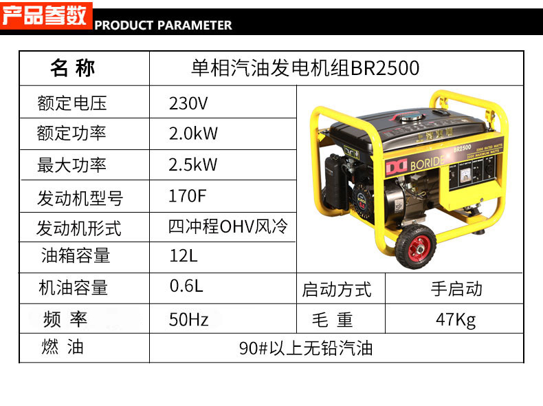 * 表示必填采購:單相2kW小型汽油發(fā)電機組BR2500