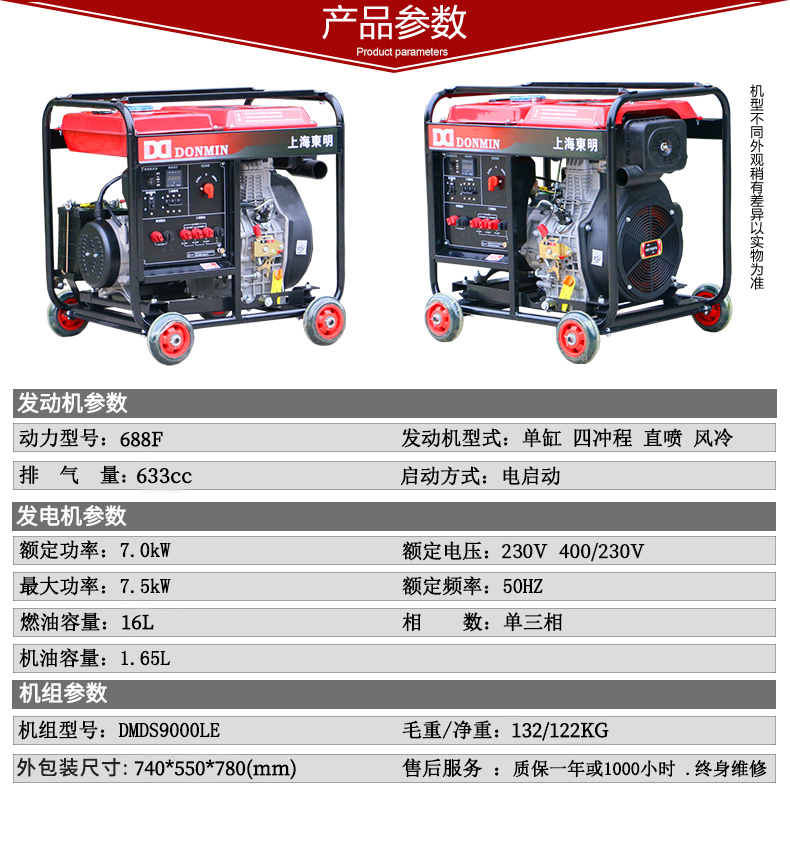上海東明7KW單三相小型柴油發(fā)電機組 DMDS9000LE