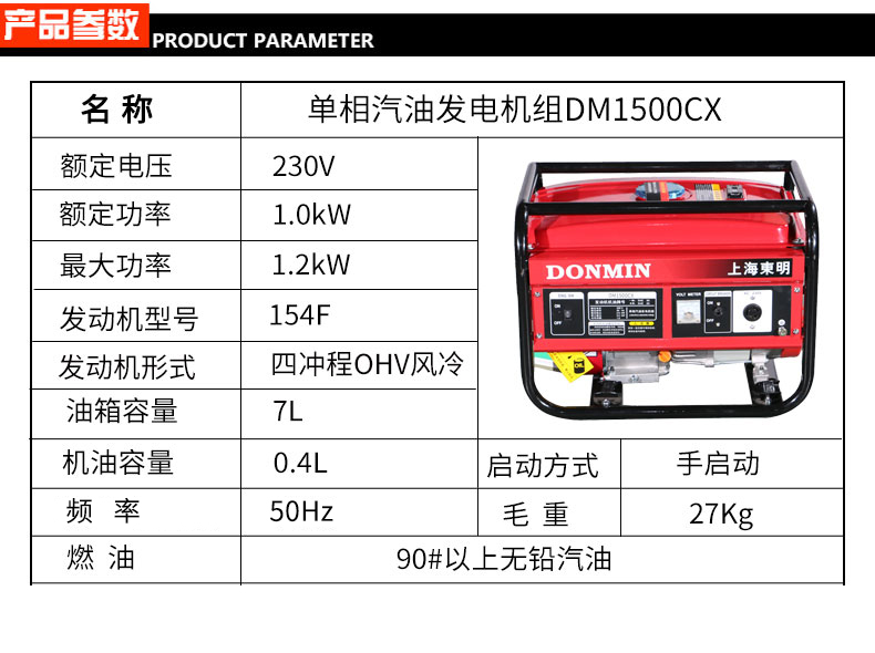 * 表示必填采購:單相1kW小型汽油發電機組DM1500CX
